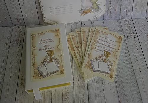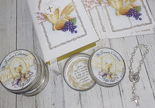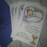 Tenés el catalogo disponible de estampitas para bautismo y comunión.